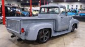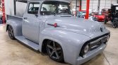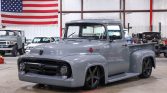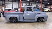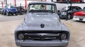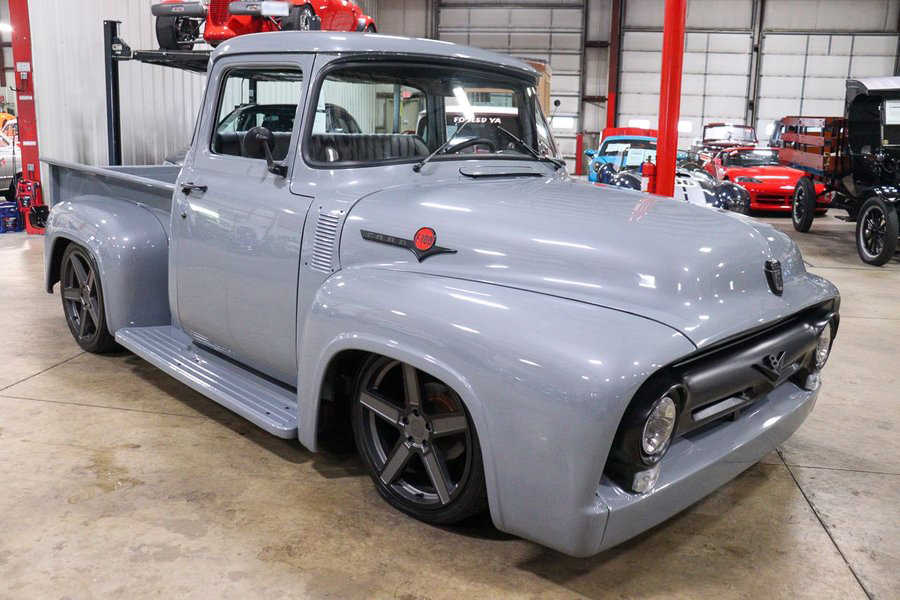 This 1956 Ford F100 stands as an epitome of timeless style fused with modern performance. Finished in a sleek concrete gray, it commands attention with its understated yet commanding presence. Every line and curve on its iconic bodywork speaks of a bygone era, meticulously restored to perfection. Underneath its classic exterior lies a heart of pure power. The rumble emanating from the hood signals the presence of a 350 V8 LT1 engine, a modern powerhouse that seamlessly blends nostalgia with performance. With aluminum heads enhancing both efficiency and durability, this engine not only roars with authority but also ensures reliability for miles to come. Paired with the LT1 engine is a Muncie 5-speed manual transmission, offering a thrilling driving experience that connects the driver directly to the road. Each shift is precise and engaging, allowing the driver to extract every ounce of power from the potent V8 engine. The truck has front and rear disc brakes, 20 inch wheels, headers, and aluminum radiator.