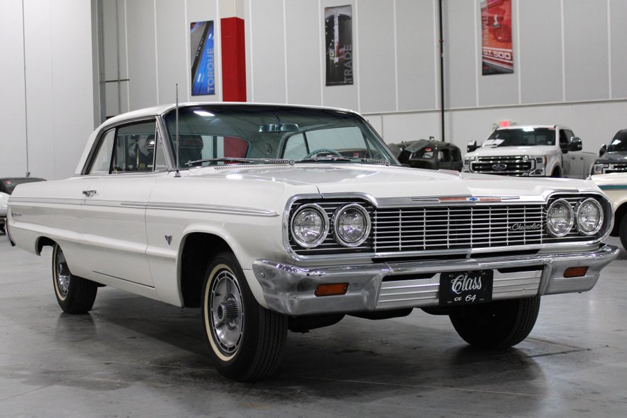 This stunning vehicle comes in a striking Ermine White paint job which is complimented by a clean Azure Aqua and white interior. Powering this automotive icon is a 327 V8 mated to a powerglide automatic transmission. This is a very clean and well maintained Impala that has been well cared for over the years. This Chevy presents itself very well and appears to have had a repaint within the last 15 years. It is a very clean stock example of an iconic legend from the beginning of the Muscle Car era. An extremely clean interior features the original bucket seats, console, and factory tach. The ’64 Impala SS is a highly sought after car and it’s getting harder to find an original model like this. This Impala is an absolutely stunning head turner. Don’t miss your chance to be the next proud owner of this ’64 Impala.