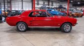 Dressed in a striking red exterior that commands attention, the Mustang’s timeless design is accentuated by its sleek lines, iconic fastback silhouette, and the distinctive galloping pony emblem on the front grille. The bold and energetic hue hints at the power that lies beneath the hood, promising a thrilling driving experience. The paint job is fresh and certainly shows new. It rides on new Cragar wheels with new tires. The exhilarating acceleration and distinctive engine note contribute to the Mustang’s legendary status among enthusiasts. The car also has power brakes and power steering