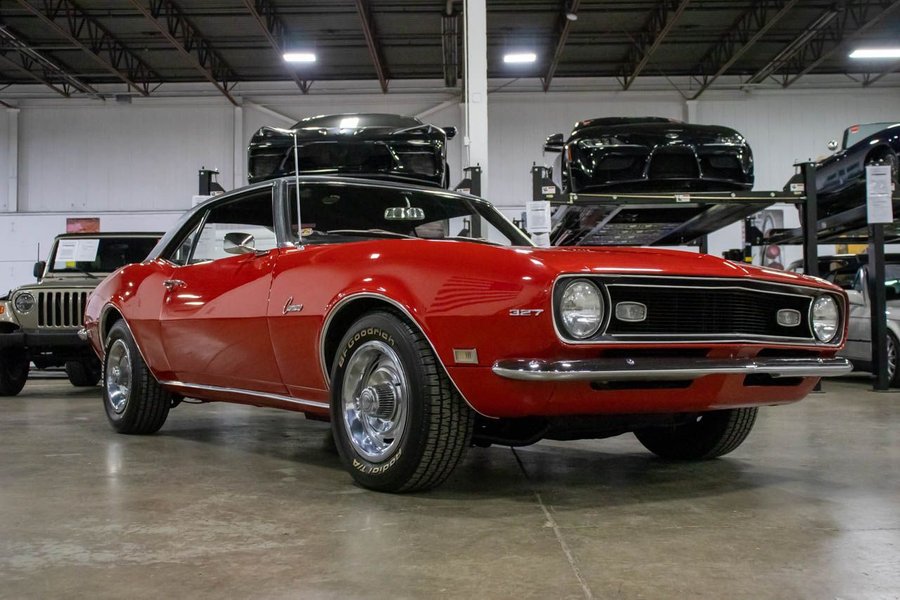 This Camaro comes in a Bright Red paint job complemented by a nice Black interior and matching vinyl top. Powering this Chevy is a 327ci V8 paired with a smooth-shifting automatic transmission. This car comes with some nice features such as; power steering, power brakes, vinyl seats, an aftermarket radio, heat, and a spare tire. This Camaro had a full restoration completed 23 years ago and still shows very nicely. This classic has always been stored inside and was well taken care of.