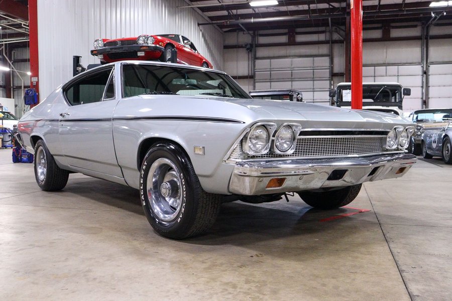 The 1968 Chevelle offered here is powered by a big block, 396 cubic inch V8, automatic transmission and rear wheel drive. It is presented in Cortez Silver exterior paint with black interior and rally wheels. Other highlights include: bench seat, upgraded radio, B&M shifter, power steering, power brakes, Edelbrock aluminum intake, Edelbrock 4 barrel carb, aluminum valve covers, etc.