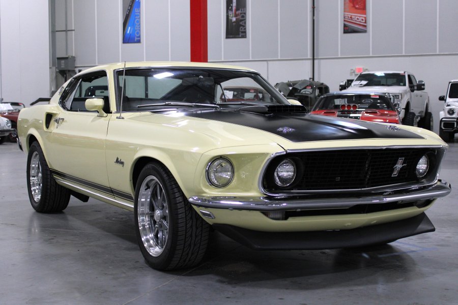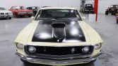 This Pony comes in a Meadowlark Yellow paint job complemented by a clean green interior. Powering this beast is a 351 Windsor V8 engine paired to a C4 automatic transmission, driving a 9″ Ford rear end with 3.70 gears. Upgrades include; American Racing 17″ wheels, front and rear, aftermarket gauges, a complete MD ignition, Holley carb, Edelbrock Performer 351W intake manifold, Aluminum radiator, front disc brakes, power steering, a thumping Comp Cams camshaft, and a set of old school traction bars.